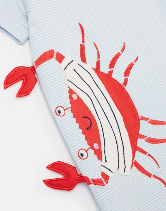 Patch Organically Grown Cotton Artwork Romper - Crab Stripe